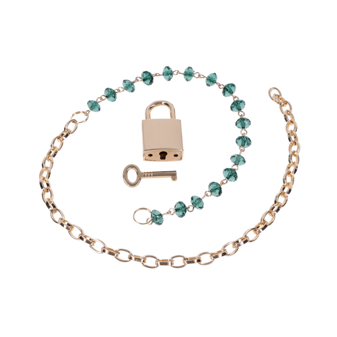 Slip on something that sparkles with meaning. The Indica Crystal Day Collar blends elegance with subtle submission, featuring green gem accents and a gleaming gold chain. The custom gold lock and key offer a sense of shared secrecy—lock it as a symbol of trust, ownership, or play. With an adjustable fit from 9" to 20", this collar can be worn snug at the throat or styled loosely as a statement piece.